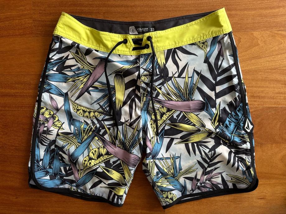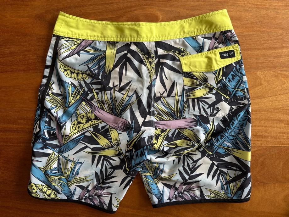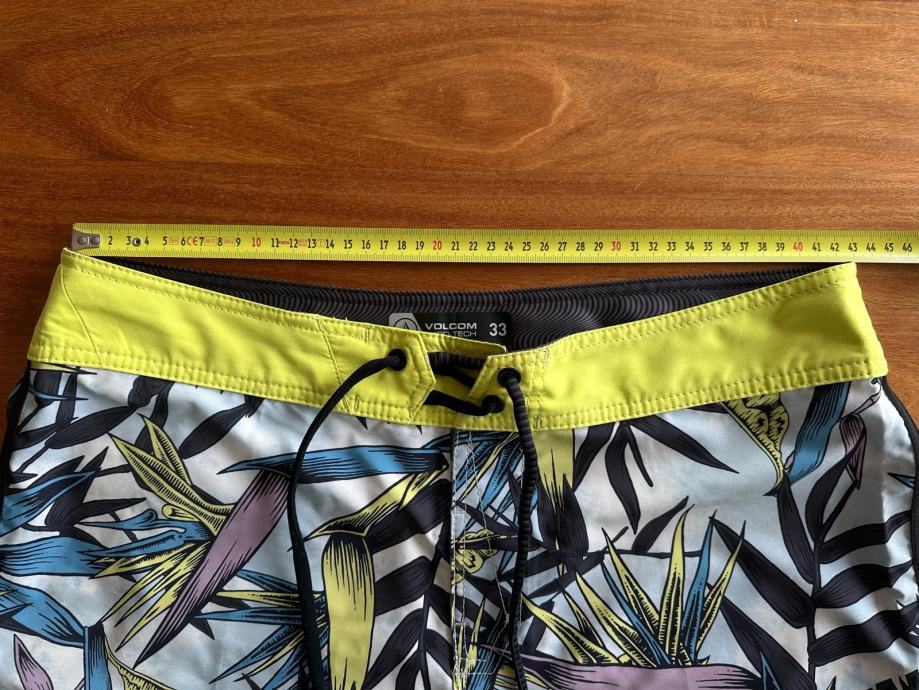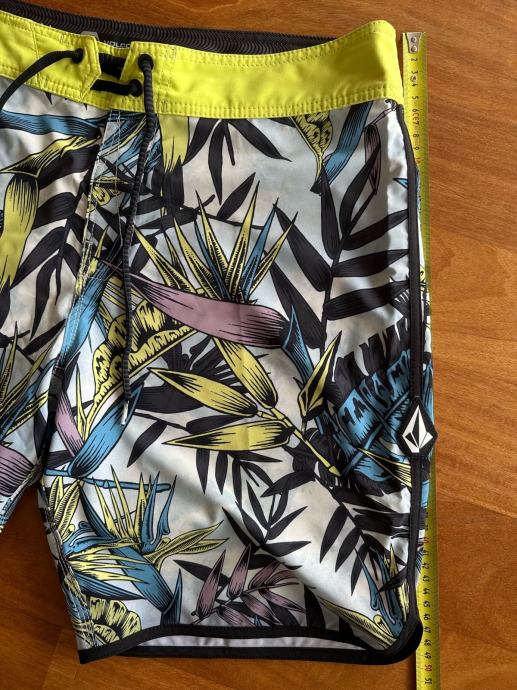 Moške bermuda kopalne kratke hlače Volcom, enkrat rabljene, velikost M, prodam. Mere so na sliki. Relacija KR-LJ.