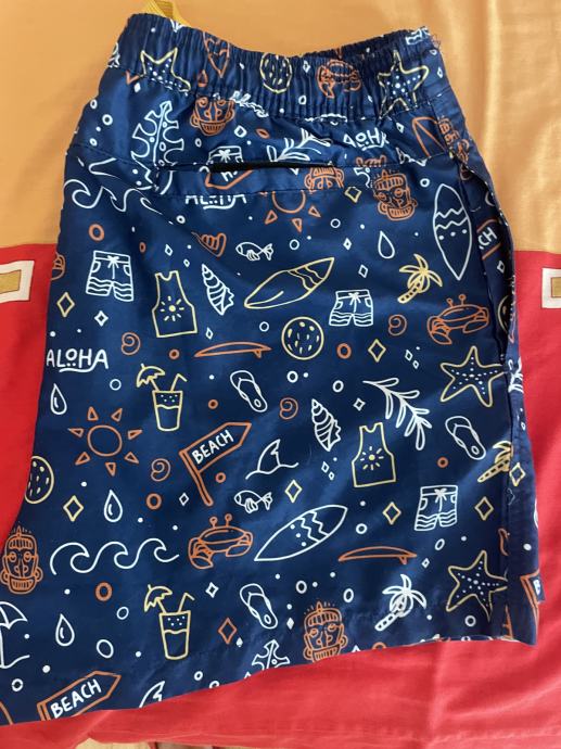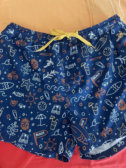 MOŠKE KOPALKE MODRE Z VZORCEM ŠT. L, zelo malo nošene, zelo dobro ohranjene. Žal postale preozke. Tel.: 070 794 698.