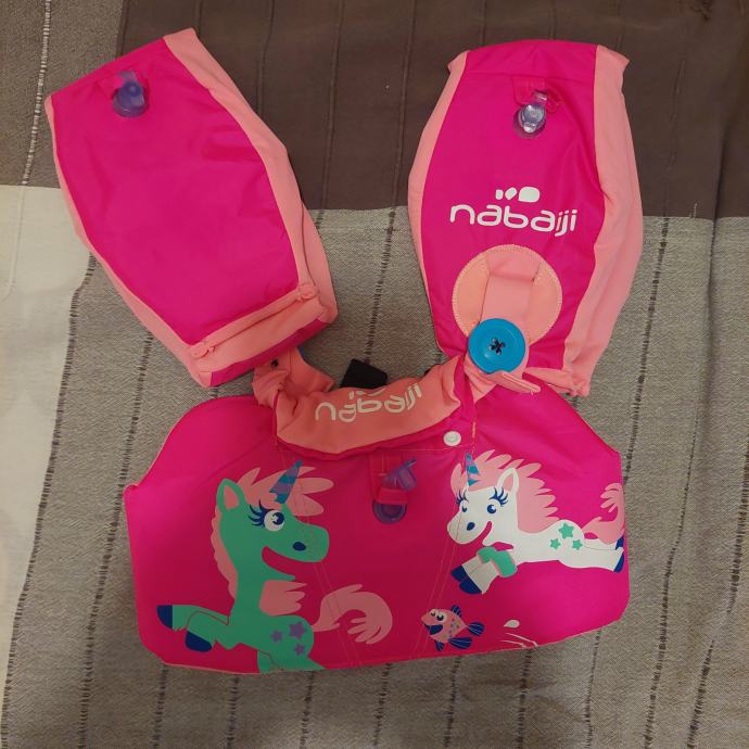 Prodam dekliški plavalni jopič roza barve. Kot nov, rabljen samo en krat.