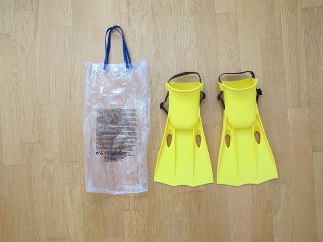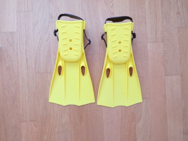 Prodam NOVE plavutke št. 38-40, rumene barve, celotna dolžina plavutke: 40 cm, plavutke je mogoče shraniti v priročni vreči, ki je priložena