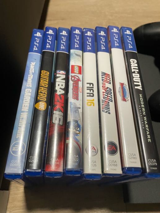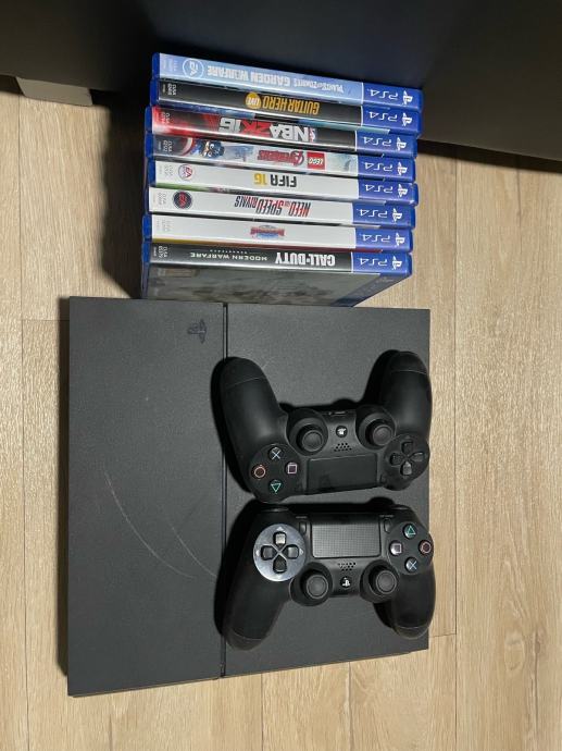 PS4, 1TB, 2 controllerja, 8 iger, figure ter kitara.