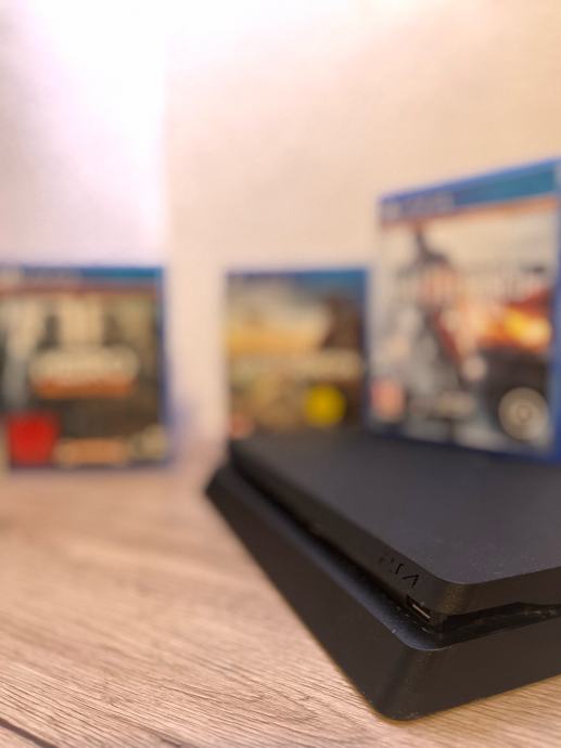 Prodajam lepo ohranjeno PS4 Slim (500 GB) konzolo z enim originalnim DualShock 4 kontrolerjem.