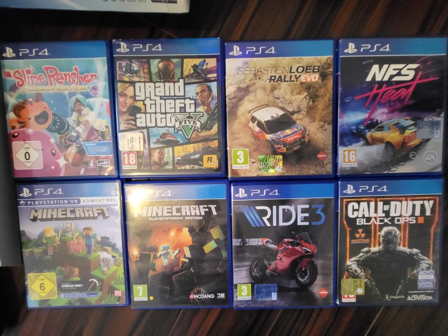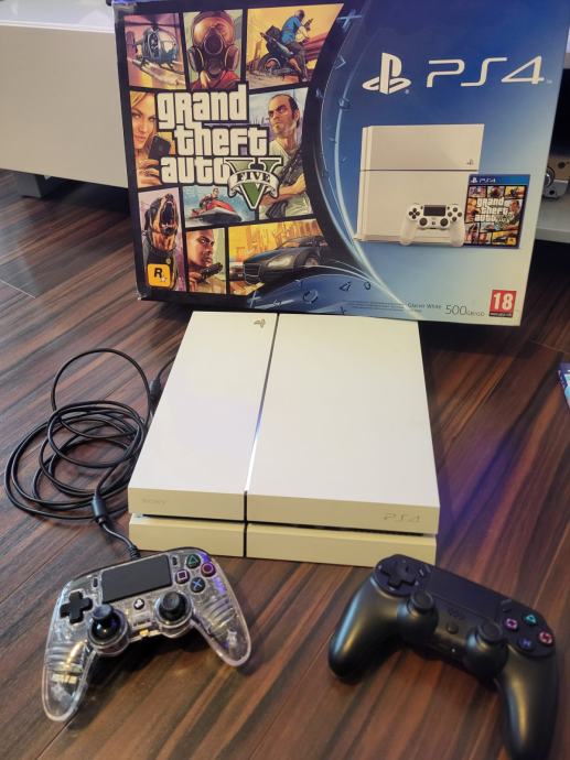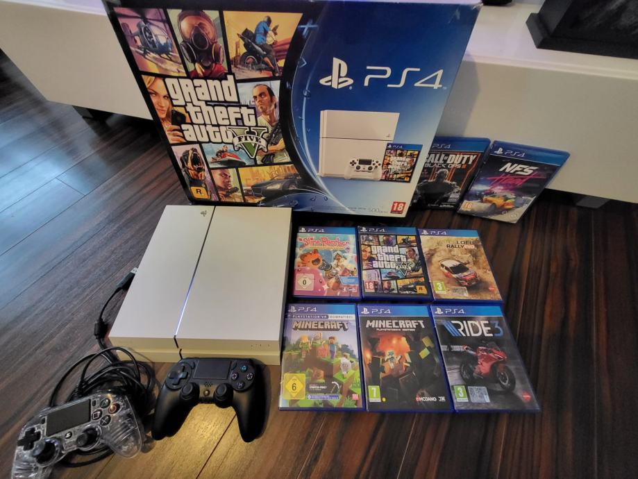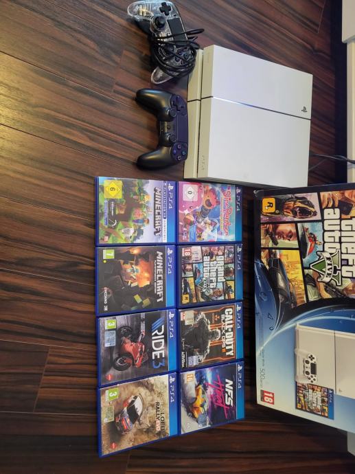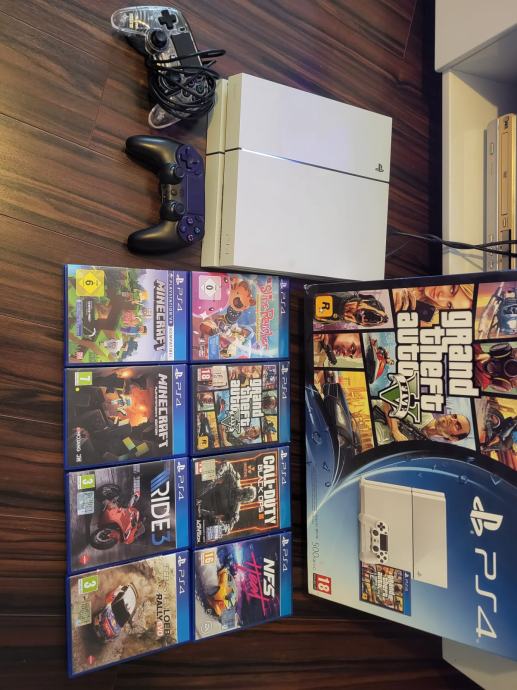 Odlično ohranjen Ps4 z dvemi konzolami, eno brezžično, duga s kablom in 8 igric. Ps dela brez napak. Vse v original škatli.