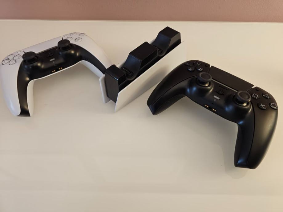 Priložena sta tudi 2 x brezžična krmilnika Sony Playstation DualSense v beli in črni barvi ter originalna polnilna postaja DualSense.