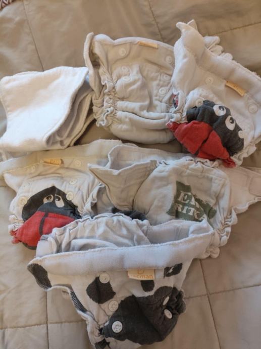 Prodam 5 krat pralne plenice in vložke Racman, dodam še dvojne hlačke za kopanje (podložene) Cena 10 eur Domžale.(Ps. Plenice niso čisto za novorojenčke, ampak 6 mesecev naprej?