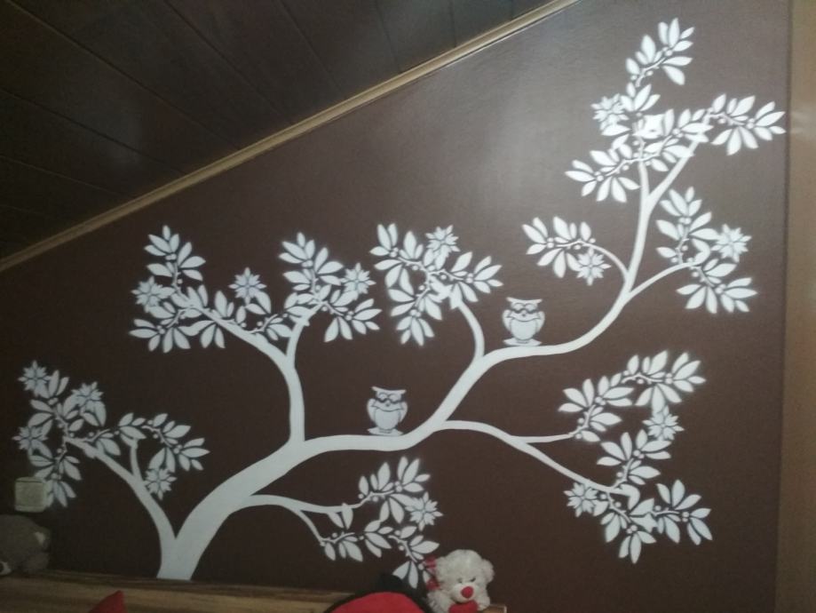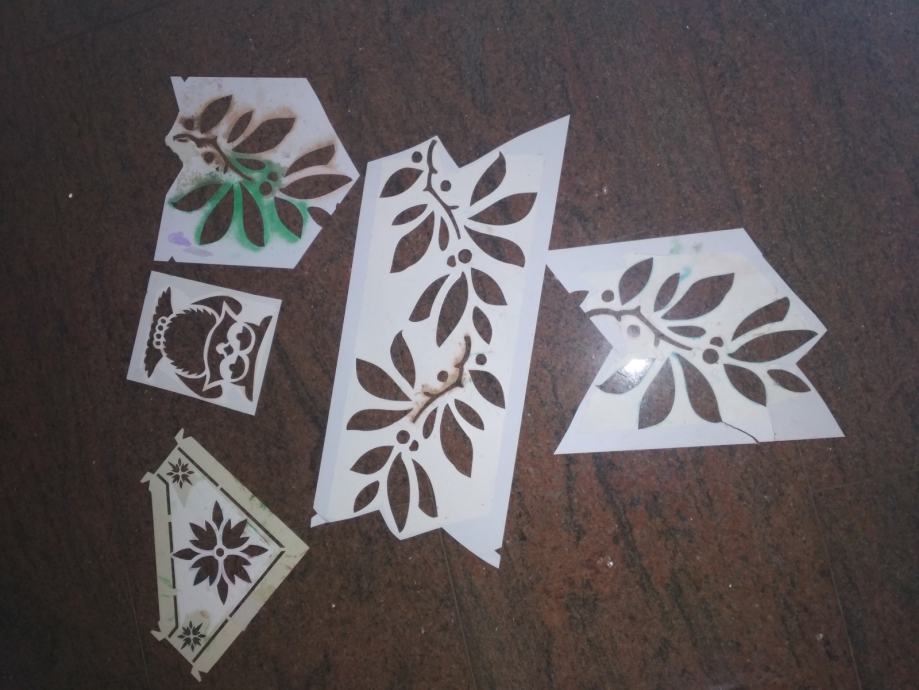 modeli za risanje, pleskanje na steno (model sovica, listi za drevo). Modeli so 1x rabljeni (priložen primer slikice, ki je naslikana na steno).