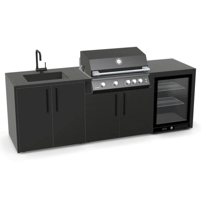 Naši kuhinjski moduli so zasnovani s španskim navdihom in izdelani iz visokokakovostnih materialov, ki so odporni na vremenske vplive. To zagotavlja dolgo življenjsko dobo tudi v najbolj ekstremnih razmerah. Uporabljeni materiali, kot so trpežno galvanizirano jeklo s dvojnim prašnim premazom (certificiranim s strani Qualicoat) in robusten bambusov les, ne zagotavljajo le vzdržljivosti, temveč dodajo tudi estetski pridih vašemu zunanjemu prostoru. Ročaji iz bambusovega lesa prinašajo topel videz, medtem ko kuhinjski pult Neolith® doda eleganco. Če niste ljubitelj lesa, so na voljo tudi ročaji iz nerjaveče pločevine, ki jih lahko pobarvamo v elegantno črno mat barvo za še bolj sofisticiran videz.