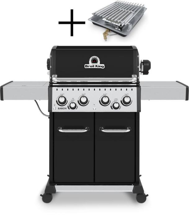 Broil King® serija Baron™ zagotavlja tako moč kot učinkovitost v različnih velikostih za vsakdanjo rabo. Srce serije Baron je sestavljeno iz legendarnih Broil King komponent, ki naredijo razliko: več močnih Dual-Tube™ gorilnikov iz nerjavečega jekla, Flav-R-Wave ™ sistem uparjanja za neprimerljiv okus, težko obojestransko litoželezno rešetko. Urbani stil, skupaj z razno opremo, naredi ta žar resnično vsestranski.