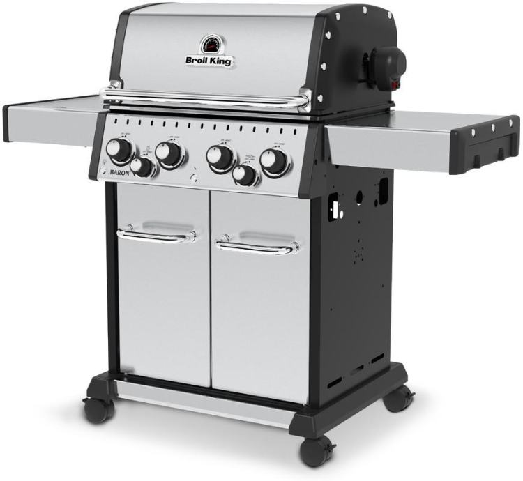 Broil King® serija Baron™ zagotavlja tako moč kot učinkovitost v različnih velikostih za vsakdanjo rabo. Srce serije Baron je sestavljeno iz legendarnih Broil King komponent, ki naredijo razliko: več močnih Dual-Tube™ gorilnikov iz nerjavečega jekla, Flav-R-Wave ™ sistem uparjanja za neprimerljiv okus, težko obojestransko litoželezno rešetko. Urbani stil, skupaj z razno opremo, naredi ta žar resnično vsestranski.