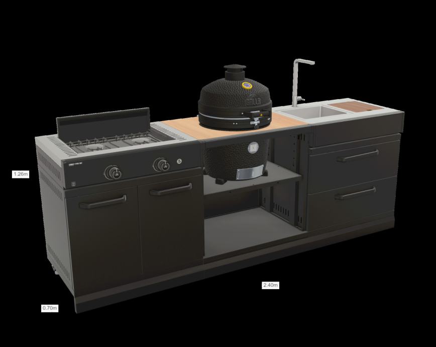 Doživite vrhunec zunanjega kuhanja z GRLLR Letno Kuhinjo Connect® PRO. Ta popoln kuhinjski sestav združuje praktičnost, eleganco in napredno tehnologijo z enotami Connect® Sink Unit, Connect® Stove Unit, kar vam omogoča, da pripravljate raznolike jedi na prostem – od hitrih zajtrkov do gurmanskih večerij.