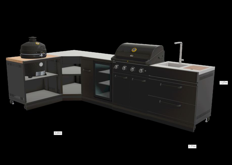 Doživite vrhunsko izkušnjo kuhanja na prostem z GRLLR Letno Kuhinjo Connect® ULTRA + Prime G4S. Ta napreden in prostoren kuhinjski sestav združuje eleganco, funkcionalnost in izjemno zmogljivost. Z enotami Connect® Cooling Unit + Hladilnik, Connect® Sink Unit, Connect® Corner Unit, Kamado Extension Unit ter vrhunskim žarom GRLLR Prime G4S je ta kuhinja idealna izbira za vse, ki želijo ustvarjati nepozabne kulinarične mojstrovine na prostem.