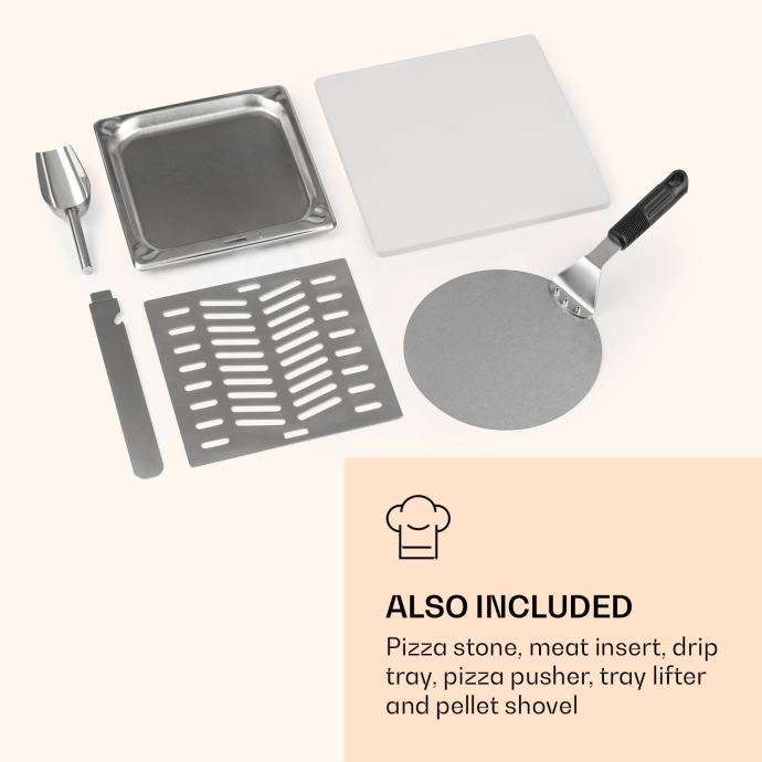 Najboljša gurmanska izkušnja popolnoma brez elektrike: edinstvena peč za pizzo Diavolo iz podjetja Klarstein vam omogoča pripravo aromatičnih jedi na pravem ognju. Pica, kruh iz pečice, meso, zelenjava ali pecivo - pečeni tradicionalno, vendar z najsodobnejšo tehnologijo peči na pelete, imajo nezmotljiv okus. Diavolo postavite na prostem, od zadaj ga napolnite z lesnimi peleti in segrejte na želeno temperaturo. Integrirani termometer vam bo zanesljivo prikazal natančno temperaturo, konstrukcija iz nerjavečega jekla pa zagotavlja hitro porazdelitev toplote, zanimiv dimnik pa dobro odvajanje dima.