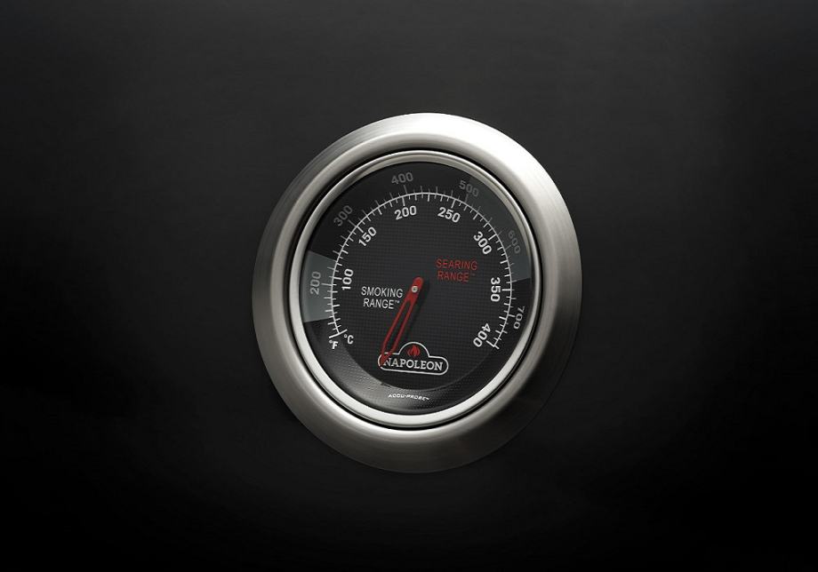 Za enakomerno temperaturo poskrbijo štirje visokokvalitetni glavni gorilniki iz nerjavečega jekla. Pokrov žara se ponaša z integriranim ACCU PROBE™ termometrom za natančno spremljanje temperature med peko.