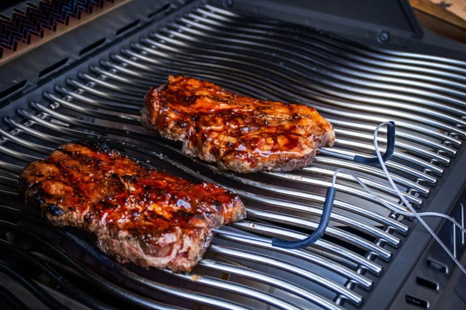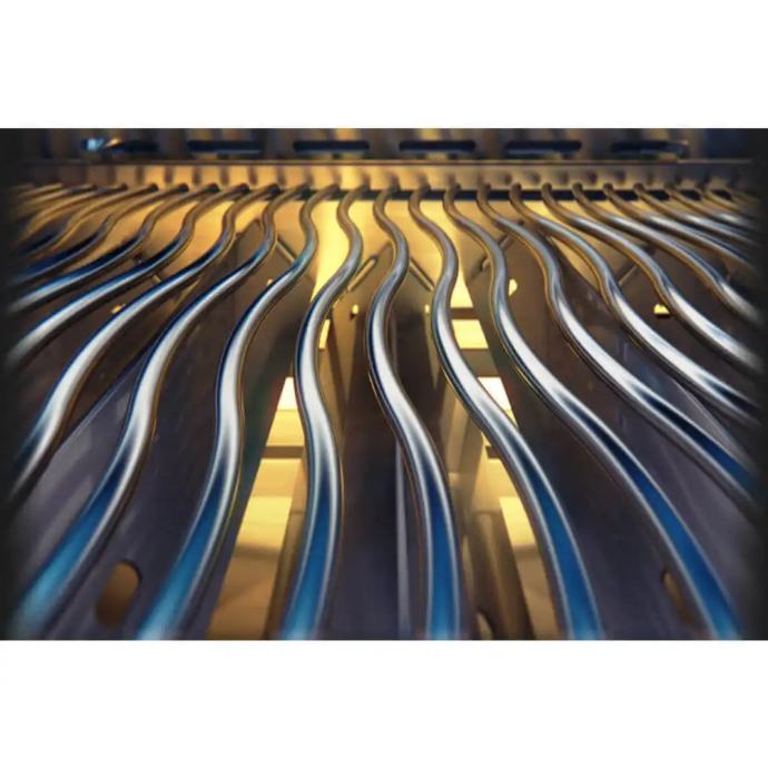 Rešetke iz nerjavečega jekla: Debeline 8,5 mm, enostavne za vzdrževanje, z edinstveno valovito obliko za enakomerno segrevanje in značilne pečene sledi.