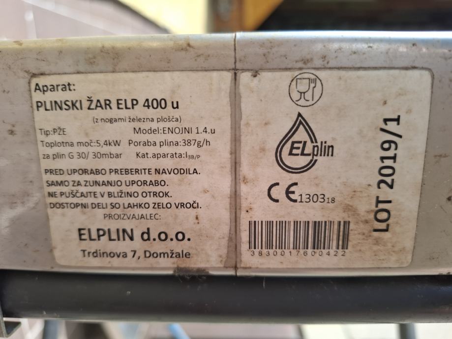 Prodam plinski žar ELP 400 z stojalom oz. nogicami, zaščitnim pokrovom in priključno cevjo za jeklenko. Možna dostava na relaciji Maribor-Slovenska Bistrica-Majšperk, MB- Kidričevo ali MB- Ormož.