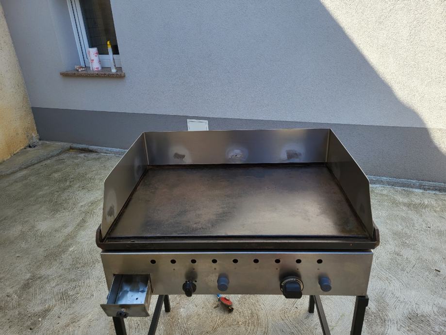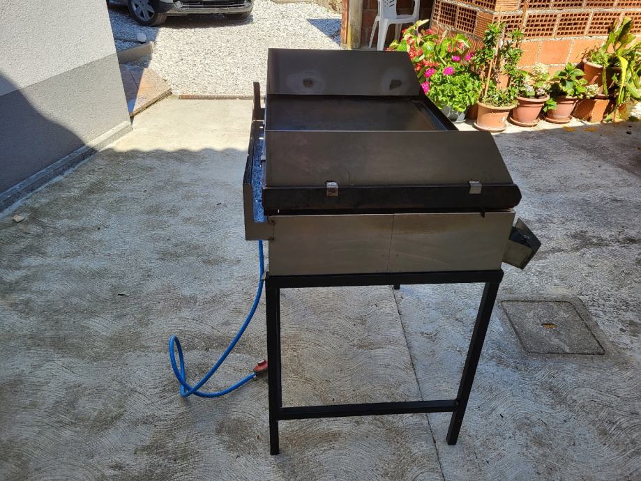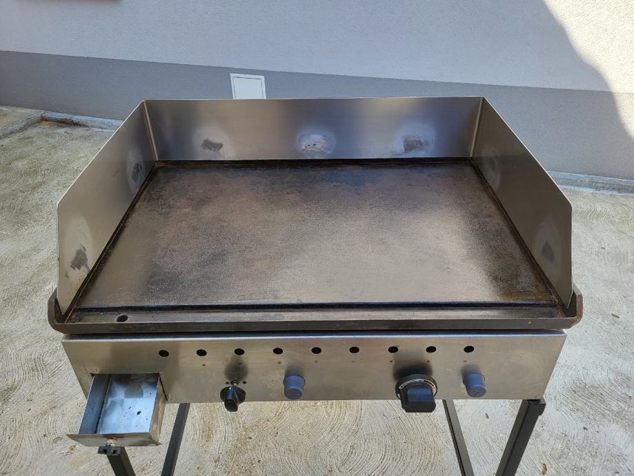 Prodam plinski žar 80x55, debelina plošče 10 mm, podaljšane inox stranice, gorilec 2x dvojni S. Ima tudi vžig na gumb.