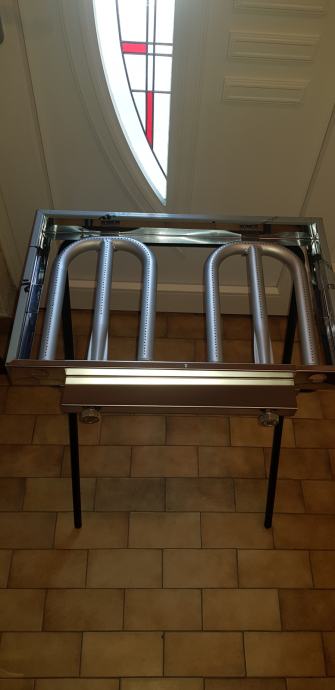 PLINSKI ŽAR 60x 45 Z PLOŠČO 4mm DEBELINE KOTLOVSKA PLOČEVINA INOX OKVIR DVA GORILCA NOGE CEV REGULATOR ZA NA JEKLENKO LOVILEC OLJA NERABLJEN PRODAM POKLIČITE 041 453 559