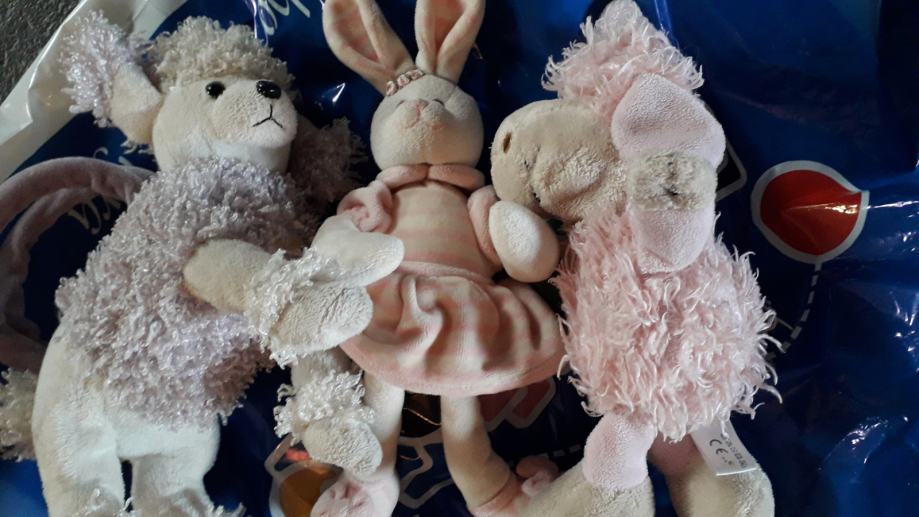 Ovčka (ki je hkrati torbica), medved, muca, Bibombi (Diddl), pikapolonica, pes in punčka, prodam. Igračke so izredno lepo ohranjene.