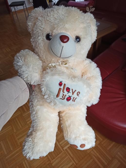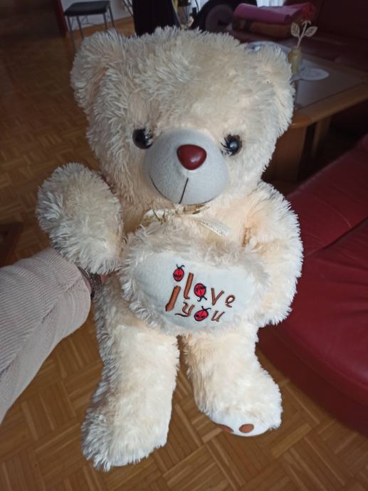 Prodamo lepega medvedka, plišastega, izredno mehak na otip, velikost cca 55 cm, s srčkom I love you.