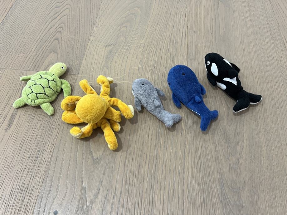 Prodam 5-delni komplet mini plišastih morskih živalic, v katerem so želva, hobotnica, delfin, kit in orka. Kot novo, stare pol leta.