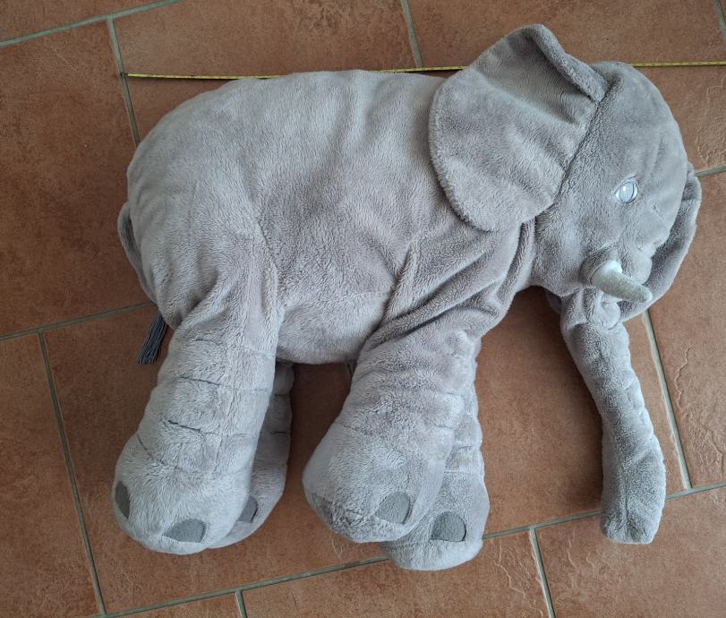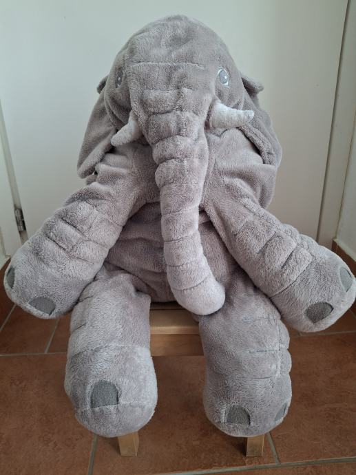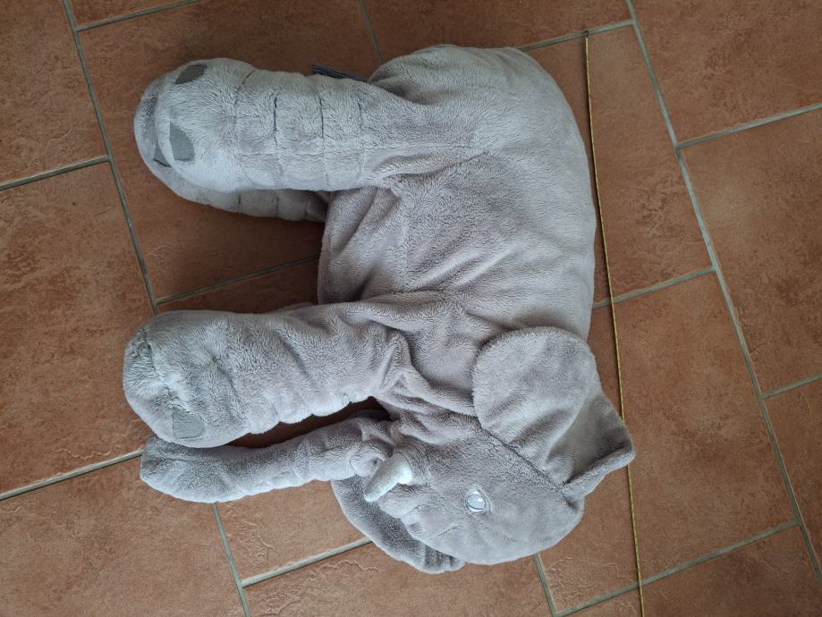 Večji plišast slon. Približne mere 60 cm x 45 cm.