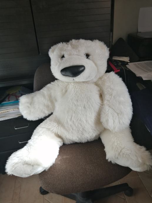 Velik mehak plišasti medvedek, dolžina 80 cm, širina 60 cm (ko ima raztegnjne sprednje tace)