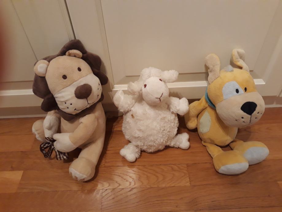 Prodam set plišastih igrač: levček, ovčka in rumen kuža. Cena je 5 EUR/ kos. Igrače so odlično ohranjene in se nahajajo na lokaciji Ljubljana-Šiška. Kontakt: 031 314 378. Zaradi selitve vljudno vabljeni k ogledu vseh ostalih oglasov!