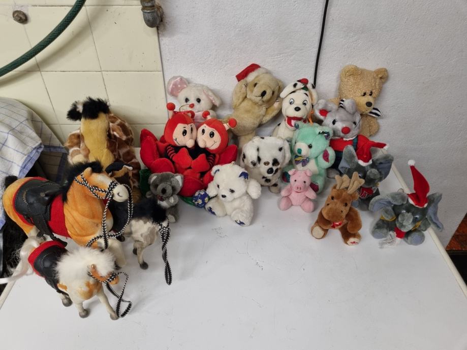 Podarim zbirko plišaltih igrač, figuric konjev in lego kock večjih dimenzij, ki so varne za mlajše otroke.
