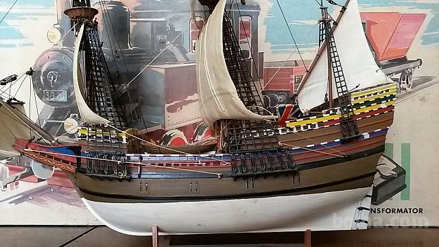 Prodam lepo sestavljeno in pobarvano ladjo Pilgrim Ship MAYFLOWER v merilu 1:83 primerno za HO železnico / maketo / dioramo.