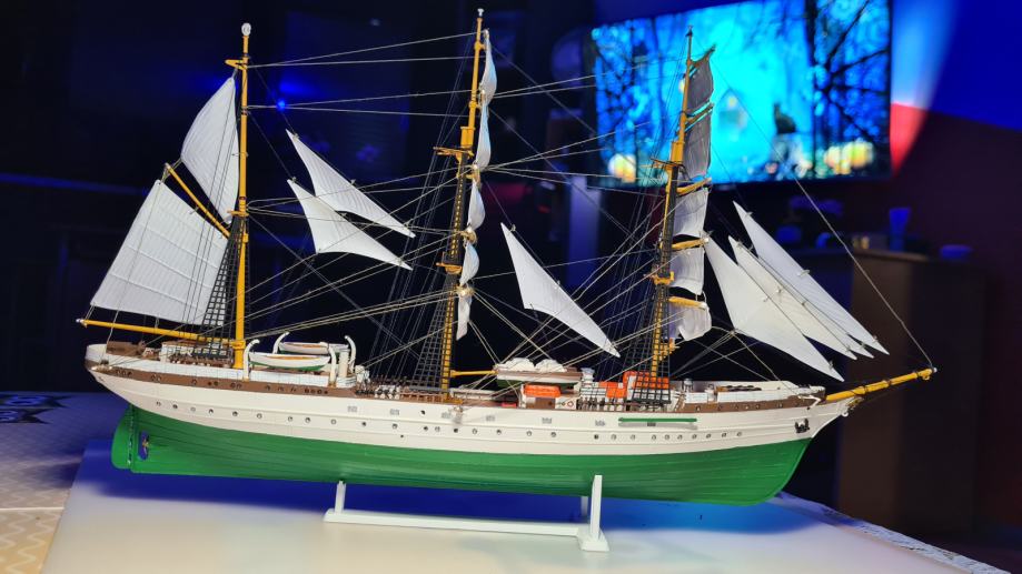 - ima rešilne čolne in podstavek z imenom
