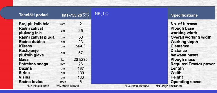 Prodam lepo ohranjen dvobrazdni plug IMT 755.20 NK - krajnik. Uporabljen na manjši kmetiji, 1. lastnik. Železa so skoraj nova, malo rabljene. Prodam zaradi večletne neuporabe.