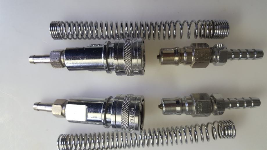Prodam dve nerabljene hitro zaporne spojke iz inoxa(nerjaveče) dožia 12cm,notranji fi cevi spojke 5mm,za gmijasto cev notr.fi 5,5mm,zunanji fi 10mm,