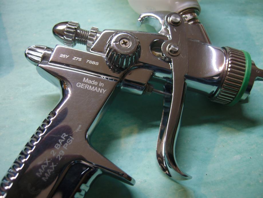 Prodam izredno ohranjeno , zelo malo uporabljeno omenjeno lakirno pištolo z vso opremo .Šoba je 1,1 mm .Poleg je tudi 40 komadov RPS 0,3l lončkov z 200 y filtri .