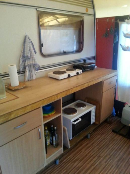Prodam dobro ohranjeno počitniško prikolico FENDT 495, z baldahinom in vso opremo, ki je postavljena v AC Kod Jakova, otok Pašman, v kraju Pašman (zaliv Lućina). Prikolica je pokrita z nadstreškom. V prikolici je manjša kopalnica, omare in dve ločeni postelji dimenzij 1,40 m x 2,00 m, z novimi vzmetnicami. V prikolici se ni nikoli kuhalo. Manjša kuhinja s štedilnikom, dvema hladilnikoma in skrinjo se nahaja v baldahinu, na tleh je topli pod. Tla pod nadstreškom so narejena iz betonskih plošč in lesenih oblog. Prikolica je stacionirana na istem mestu vso leto (po koncu sezone se ne prestavlja). Prikolica je od plaže oddaljena cca 30 m (ima pogled na morje).