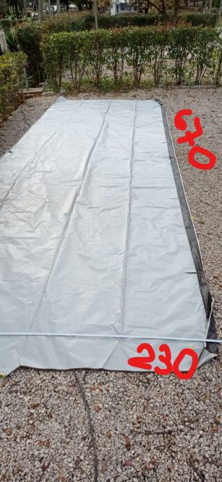 Prodam odlično ohranjen podaljšek predprostora s štirimi stranicami, nikjer poškodovan, kot nov, širine 2,3m. Vse se pritrjuje in zapira z zadrgami. Izdelan v podjetju CAMP-ING Orehek Domžale. Zadrga za pripet na baldehin je skupne dolžine 670-690 cm. Zraven so še štiri stranske stranice s katerimi lahko podaljšek v celoti zapremo. Ugodno.