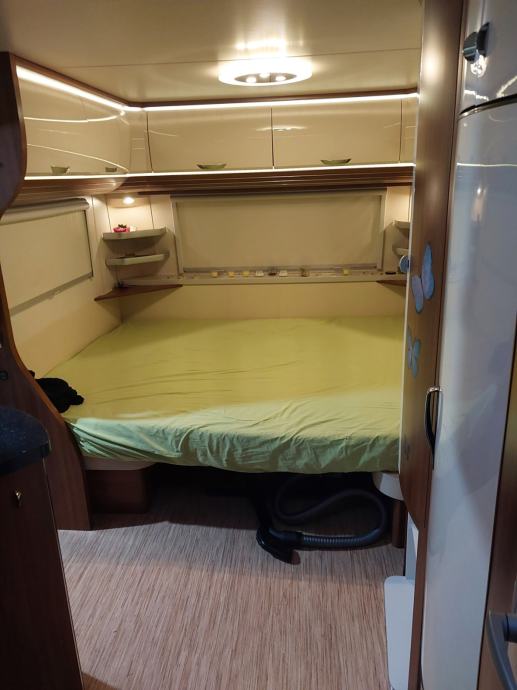 Prikolica hobby premium letnik 2014, registrirana... zelo lepo ohranjena. Vse LED razsvetljava. Na eni strani je zakonska postelja z nekaj let starim jogijem DORMEO 200/180. Na sredini je kuhinski del, kateri ni bil v uporabi, tudi hladilnik ne... na drugi sredinski strani je WC katerega tudi nismo uporabljali. Na drugi strani pa postelja cca 200/240 z enim letom starim jogijem narejenim po meri iz lateksa. Klima na prikolici je bila prejšnje leto zamenjana, katera tako hladi, kot tudi ogreva... Ogromno predalov, omar, omaric... na vseh oknih platno roloji za popolno zatemnitev...