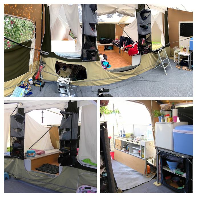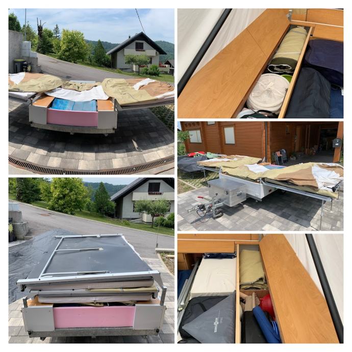 izven sezone. Na poletno sezono je bila vedno uporabljena 2 tedna v družinski zasedbi (2 odrasla + 2 otroka). Šotorska prikolica je vrhunska za bivanje, zračna in zelo prostorna. Ima 2 ločeni spalnici (postelja z letvami), poleg tega je poleg še dodatna spalnica za pod posteljo (nikoli uporabljena).