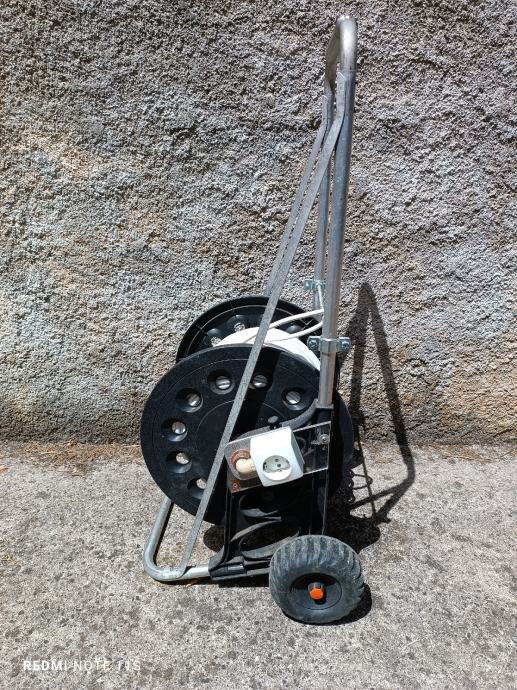 Kabel na prilagojenemu kolutu/voziček. Lahko tudi samo kabel 65m, kabel je nov.