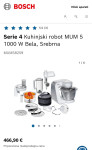 Skoraj NOV Bosch MUM 5 z vsemi dodatkiLokacija: Ormož, IvanjkovciObjavljen: 11.12.2025.Shrani oglasUporabnik ni trgovec245 €