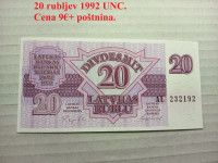 LATVIJA 20 rubljev 1992 UNC (2025)Lokacija: Slovenske Konjice, LočeObjavljen: 06.12.2025.Shrani oglasUporabnik ni trgovec9 €