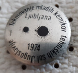 Značka Tekmovanje mladih kemikov Jugoslavije Ljubljana 1974Lokacija: Ljubljana Vič Rudnik, Vič - Dolgi mostObjavljen: 26.11.2025.Shrani oglasUporabnik ni trgovec1,20 €