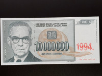 Jugoslavija 10000000 Dinara, 1994 (P-144) AA000000, UNCLokacija: Ljubljana Vič Rudnik, BrdoObjavljen: 18.11.2025.Shrani oglasUporabnik ni trgovec50 €