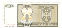 BANKOVEC 50 dinarjev 1992 Bosna in HercegovinaLokacija: Domžale, ZaborštObjavljen: 03.12.2025.Shrani oglasUporabnik ni trgovec1 €