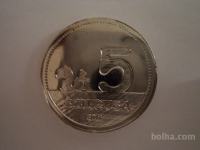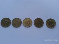 KOVANEC 5 tolar 1992,93,96,97,98,99,2000 SlovenijaLokacija: Domžale, ZaborštObjavljen: 22.11.2025.Shrani oglasUporabnik ni trgovec0,80 €