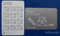 Žepni koledar 2016 Pošta SlovenijeLokacija: Ljubljana Vič Rudnik, Vič - Dolgi mostObjavljen: 11.12.2025.Shrani oglasUporabnik ni trgovec1 €