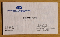 Stara vizitka Vizit karta JAT Yugoslav airlines Air mail managerLokacija: Primorsko-goranska, RijekaObjavljen: 11.12.2025.Shrani oglasUporabnik ni trgovec6 €