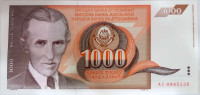 Jugoslavija 1000 Dinarjev Dinara 1990 UNC Tesla Serija ACLokacija: Ljubljana Moste Polje, DobrunjeObjavljen: 09.11.2025.Shrani oglasUporabnik ni trgovec4 €