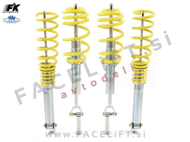 Nastavljivo vzmetenje (gewinde) FK Automotive. Vzmetenje je novo, z garancijo. Komplet vsebuje štiri amortizerje, štiri vzmeti in ključ za nastavitev višine.