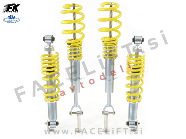 Nastavljivo vzmetenje (gewinde) FK Automotive. Vzmetenje je novo, z garancijo. Komplet vsebuje štiri amortizerje, štiri vzmeti in ključ za nastavitev višine.