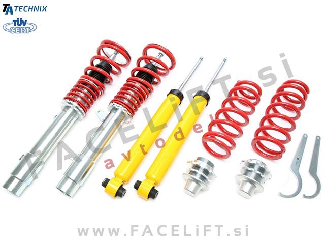 Nastavljivo vzmetenje (gewinde) TA Technix. Vzmetenje je novo, z garancijo. Komplet vsebuje štiri amortizerje, štiri vzmeti in ključ za nastavitev višine.